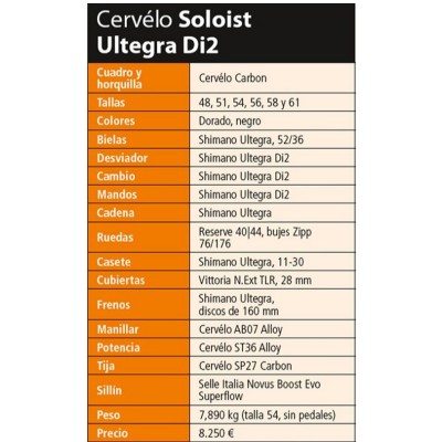 - Horquilla: Cervélo All-Carbon, Tapered Soloist Fork